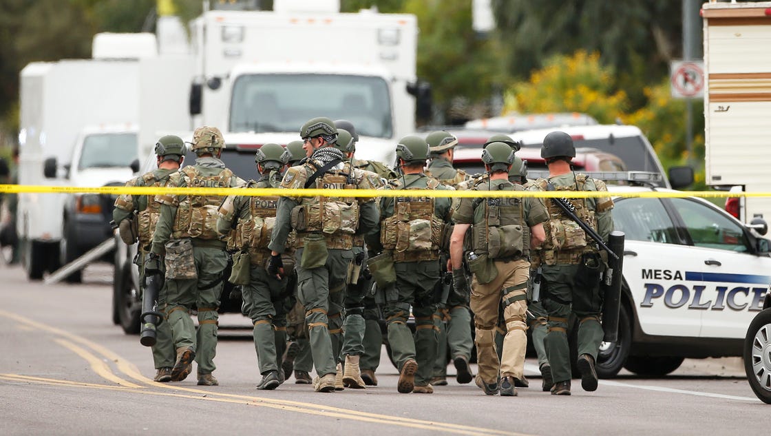 Overkill is always proof. There is no need for militarized storm troopers in Mesa over a random shooting involving a few people. It is never necessary. Nor could they be there on site unless it was a set-up. The Zionists are doing all in their power to impose the climate of martial law. They have stolen virtually all the country's assets. They are warming up the public for something, that is something which is devious beyond belief.
